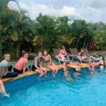 Hola from Playa Chaman!! Today was primarily a travel day, with some stops to further explore Costa Rican culture and stock up on such much needed souvenirs as well as rice and beans. We started off the day with some last minute packing accompanied by torrential downpour. Delicious pancakes made up for the wet walk up to the restaurant. Shortly after, we loaded our bags into the bus and bid farewell to Hotel Heliconias (we will miss you). Windy roads took us through mountains, small towns (or, as the Costa Rican’s would day, pueblos), and coastal areas. The group compiled a playlist packed with a variety of road trip songs — rap, pop, country, Disney, and a little Mamma Mia mixed in. An hour or two into the ride, we stopped at a souvenir shop/restaurant called Orotina in Putarenas Providence. That pit stop lasted a total of two hours, which was — perhaps just as Goldilocks would like it — just the right amount of time to fill our bags with gifts for friends and family as well as eat some delicious buffet cuisine from the adjacent restaurant. No one would argue that the cake was the best part of the meal. The windy roads continued as we drove along the coast, weaving our way through more towns, mountains, and coconut farms. At long last, we arrived at El Tecal, our cute hotel nestled in the forest just a quick jaunt from the beach we will soon be surfing at. This might be the only above ground pool we’ve ever seen, and it exceeds expectations. After taking an hour to rest and recuperate, we ate dinner as a group and talked about our exciting day tomorrow. Although we are nearing the end of our time in Costa Rica, this excursion to the beach has garnered much excitement from the group as a whole. Pura vida 🙂