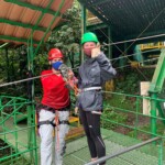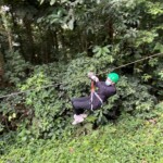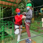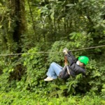 Today we had an early start to the day at 6:30 for breakfast at 7. We brought our backpacks which we successfully packed with all our gear for Poco Sol, the biology station. Breakfast was pancakes, syrup and fruit and we had a pretty of the picturesque jungle and flowers around Heliconias Lodge. We hopped into the vans and headed to zip lining by Arenal Lake. Lake Arenal, the biggest lake in Costa Rica, stretched on forever and had many islands in it. After getting our equipment we took a tram up through the jungle canopy to the starting platform. There was a big hand statue that we could stand on and took pictures there and on the platform with the lake in the background. The zip lining had seven cables, including a practice one and many longer cables. The jungle dropped away once we got on the cables and we were afforded an amazing view of the green rainforest and the lake. We could see Arenal Volcano but it was covered in clouds.