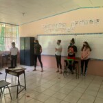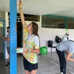 Hola! We started off the day with delicious pancakes and honey at 8. Then we took the bus from Hotel Heliconias to the community school. We had a little karaoke to Someone You Loved by Adele and Shallow by Lady Gaga and Bradley Cooper. When we got to the school it was very sunny. But don’t worry, we put on sunscreen! We started painting the fence until Patrick, Wyatt, Jared, and Cassidy went to the garden at the back of the school. The holes we dug yesterday we filled in with concrete. Later a couple more of us took a break from painting and joined the effort in the garden. At 12:30 we had lunch of beans, chicken rice and pink salad, as well as watermelon juice. After we all took a break from our jobs we worked together to finish painting the front side of the wall in brown and white. Then we went into the cafeteria to make our own tortillas that we later had for dinner. We went back to the hotel to cool down and some of us went to the pool until it started raining. At 6:30 we had dinner and watched soccer on the TV. Dinner was plain rice, carne con salsa, chips, and our handmade tortillas. Then we had a meeting to discuss the day, and now we are writing this!