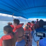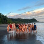We all woke up at various times today, some waking up early to run before breakfast while others woke up at 7:45 to eat breakfast at 8. We enjoyed rice and beans (which most people are tired of now this late into the trip), as well as eggs, waffles with maple syrup, watermelon, pineapple, coffee, and orange juice. After everyone ate breakfast, we put on our bathing suits and got ready for whale watching at 9. Everyone loaded onto the bus, and after a 10 minute bus ride, we were at the beach where our boat ride with start. While we waiting for a guide, some people put on sunscreen (others didn’t in hopes of getting a tan), used the bathroom, and took Dramamine to prepare for a ride. Our guide arrived, handing us each life vests and showed us a Caiman, which was a small alligator type thing. Then we walked to the beach where our guide, Ozzie, told us the safety procedures of our trip, then we walked to the ocean and boarded the boat. We were on our way zooming, through the water when we spotted a dark gray humpback whale with her calf. Ozzie told us interesting facts about how whales and underwater mammal sleep by turning off half their brain for a few hours at a time, then switching in order to get optimal rest. While Ozzie was talking, we continued viewing the beautiful mama whale with her baby, taking many videos and pictures to cherish that memory forever. After following the wheel with her calf for 30 minutes, we left because of the regulations Costa Rica has in order to not stress the whales, so they will come back next year. We rode in the boat for a while, seeing the beautiful coast and cool caves caused by erosion. Ozzie continued telling us cool facts about the nature of Costa Rica, then we stopped in the middle of the ocean to swim, bob on our life vest, and talk for 30 minutes. The water was a comfortable, refreshing temperature. After our time was up, we reluctantly got back on the boat and headed back to the beach where we originally departed. We thanked Ozzie and the rest of the crew that worked on our boat and walked back to the entrance. We washed out feet and sandals of sand then some of us got overpriced but very delicious ice-cream and milkshakes while we waited for the bus. After the short bus ride back to the hotel, we had 30 minutes of free time and to shower. That’s when we all went to the restaurant at 1 where we all enjoyed chicken and beef quesadillas with french fries, and the people who are gluten-free ate grilled veggies and tortilla chips with guacamole. After the delicious lunch, we had free time until 3:30 when we, again, showered, watched suits, packed, read etc. At 3:30 we had the option to go to the store to buy snacks; then go back to the hotel room for more free time or go to the beach then stop at the store on the way back. Most of the boys went to the beach while most of the girls chose the first option because we were exhausted from whale watching. After the beach and/or store, everyone got ready to go to a nice restaurant to enjoy fruit drinks, watch the sunset and eat dinner. In our nice outfits, we left at 5 for a 10 minute bus ride to the restaurant. Once at the restaurant we had the option between a mango, strawberry, pineapple and papaya drink. We played trivia in teams of 4 waiting for our drinks. There were various questions from different parts of our trip, mostly focusing on the names of rivers, rainforest, and other nature related things from our travels. After the “no-namers” group, (Katie, Jagger, Sasha, and Maya) won trivia, we ordered our food. Then we went to enjoy the very end of the sunset and took many pictures as a group, then separately with our friends, with the beautiful ocean and colors of the sunset in the background. Most of us watched for a long time, talking to our friends and enjoying the view. Then we went back to our table and ate a delicious dinner varying from calamari to chicken sandwiches to tuna tartare. We sat and talked for a long time at our table, then made our way back to the bus and headed back to the hotel. Back at the hotel, we gathered for a group weather check where we discussed travel details for early morning flight on Friday and all of our questions were answered. Our weather check question was “What meal are you feeling today?” After everyone answered the question, we went over the schedule for our last day in Costa Rica tomorrow. Then it was time for bed, which meant packing, eating snacks, and watching suits. (Except for the boys who are stuck with Costa Rican cable.) Overall today was a fun day filled with fun activities. Everyone is starting to get sad about leaving, but excited to sleep in their own beds after such a long trip. Bye!