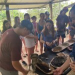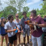 This morning we woke up to have breakfast in the hotel restaurant at 8am. We were served delicious pancakes and juice. After the meal we got onto the buses to a ten minute ride to a cheese farm. Once we arrived, we were met with five adorable mini poodle puppies. Soon we had to detatch from them to learn about the history of the Crisley family’s cheese business which was very interesting to learn about. Right after we learned about the history, everyone rushed back to the puppies, while six people at a time went to learn about the process of making cheese then had tasting samples. After everyone had gotten a chance to make and taste the amazing mozzarella cheese, we went on a tour of the farm. First we stopped by the different fruit trees they had on the farm, such as starfruit, avocado, mango, guanabana, etc. Then we moved on to visit the animals including pigs, chickens, bulls, and more farm dogs. Once the tour was over, we had amazing homemade nachos served with the cheese they made. After lunch and saying bye to the puppies, we got back on the buses to an animal sanctuary. We got to meet many of the rescued animals such as monkeys, different birds, and more mammals. After that, we made the food for each animal then watched the tour guide feed them. When that was over we went back to our hotel rooms to chill for a while. We got to do some laundry and some students made calls home. At 7pm we finally ate some much-needed food at the restaurant. At 8pm we had our group weather check and talked about the plan for tomorrow. Some people danced to the cha-cha slide while others sat out by the pool chatting. After our full day of adventure, we all went back to our rooms to get ready for bed. It was eventually time for lights out and everyone got to sleep to rest for the next action-packed day. This was definitely an amazing day and I think everyone had a lot of fun. I can’t wait for our plans tomorrow and the fun we’ll have then.