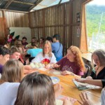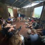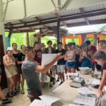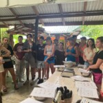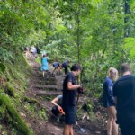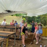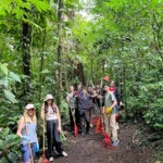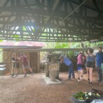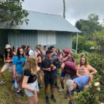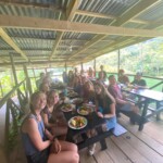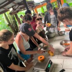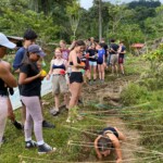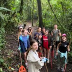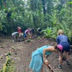 Today we woke up bright and early at the rainforest reserve and ate group breakfast. After suiting up in our bugspray and muddy shoes, the group split for our service jobs. Half of us grabbed shovels, while the other were given rakes. After a long trek through the rainforest, complete with cows and bugs, the group arrived at stop one and began breaking up and moving the dirt and mud to even out the trail. Meanwhile, the rake group, as you may have guessed, began to rake the leaves off a nearby trail. Though a tad back-breaking, the shoveling became incredibly rewarding when the trail began to even out and the work progressed. The same could be said of the raking group, who, after digging through inches of leaves, felt the impact of their work when the trail could finally be seen. After a return hike and lunch break, the groups set back off. Within 20 minutes, it began to rain, but we persevered and many chose to forgo raincoats to feel the cooling rain. A sense of peace settled through the rainforest as the cicadas chirped and the sun peeked through the clouds. Though forced to return early because of the rain, everyone had a smile on as we returned for relaxing and eventually dinner. We ended the day with shout outs, excited for our workday tomorrow!