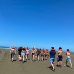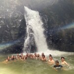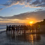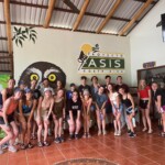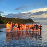 Today we woke up and went on a hike to a waterfall. We planted small trees on the way. The waterfall was so beautiful. The pressure from the waterfall was so strong I could barely swim to it. We then took a bus ride and spent an hour at a beach. We all went into the water. It was very warm but also super salty. The bus took us back to the hotel where we had chicken, chips, and guac. In the afternoon we had another surf lesson. It was my first day, but everyone else’s second. I wasn’t feeling well enough for day one. The waves were kind of scary! A bunch of us also went on a sunset walk on the beach. It was orange-yellow and just amazing. We walked back to the hotel for dinner and showers. For our group check-in, I asked which celebrity each person felt like. I said Mac from Teen Beach because of all the surfing we did today. Some of us played cards then went to bed. It was a great day.