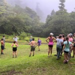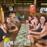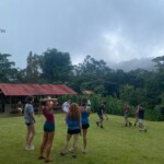 This morning, most of us woke up for a delicious 7am breakfast of rice and beans, eggs, and toast. A few runners, however, woke up at the crack of dawn to watch the sunrise and run through the jungle. Then we chilled for a little, admiring Volcano Arenal, which was fully visible for one of the first times because the fog had cleared. Then we got ready for a morning of service. We put on our soggy, muddy shoes and trekked out onto the trails. We continued our raking and shoveling endeavors while listening to some jams. Then we came back tired but ready for a lunch of a new variation of rice and beans with the addition of beef and watermelon. Then the kids who stayed late in the morning to work got an extra long lunch break in which they read and played Egyptian ratscrew, a card game. Then it was getting rainy as is common in the afternoon so we came back from afternoon of service early. Soon it started to thunderstorm so we all hung out on the hammocks upstairs, enjoying the cool breezes and rain tapping on the roof. We also enjoyed a group soccer game together with the rangers and their kids. Many of us enjoyed a freezing cold shower before a lovely dinner starting homemade yucca fries with chicken. We closed out the night with a group meeting where we updated our group expectations and finished with a riveting game of Indian Chief. As this is our last night in the Children’s Eternal Rainforest, we are sad to leave this beautiful place and the people we met but excited for some warm showers at the Heliconias Hotel!