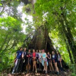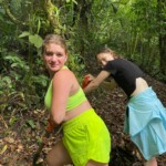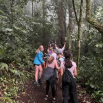 Today we woke up dreading a long bus ride to the rainforest. On the way we stopped by Walmart and got necessities and snacks like aloe vera and chips. One of the few guys on the trip got a speaker so we were listening to very vibey music. Even though the bus ride took an hour and a half longer than planned, we enjoyed lunch, got to stop by a cute gift shop and had amazing frozen naturales. The mango and passionfruit naturales were most popular amongst our group. After the filling lunch, we got back on the bus and headed into the rainforest. It started pouring cats and dogs but we hiked anyways. The views on the way up to where we started our hike were majestic and beautiful. We hiked down steep muddy hills, in the rain, and got soaked. We walked deep into the rainforest. We got to see a black guan, a turkey looking bird. After about an hour long soggy hike we collapsed in our rooms. Many of us decided to take showers in negative warm water (ice cold). There were hammocks outside our doors on the deck, which were facing the amazing views we had of the foggy mountains. We indulged in spaghetti, garlic bread, and cantaloupe for dinner. Contented with spaghetti, we prepared ourselves for our nightly slumber, falling asleep to the symphonic rainforest sounds.