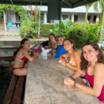 Today was our last morning with the host families. It was extremely emotional for some, and very bittersweet. After we walked down to the community center, we said goodbye to our families one final time. We took a short bus ride to a the store to stock up on snacks one final time. Once we have our necessities we take another quick drive to our lunch place. It was in an adorable beach town right next to the ocean. We enjoy a yummy lunch with tropical lemonades and an adorable wiener dog who would come up to us for pets. We took one last drive to our hotel. The place we are at is beautiful. We got our groups and took a while to settle in. Once we were comfy we hung out with everyone by the pool. We spent some more time with our roommates, trying to escape the heat before dinner. We had dinner at 6:30 which was a nice spread of chicken, rice, salad and a yummy juice. We also got to know two other groups who are staying at the same spot! We finished our food and did our group weather check, where we shared our favorite memories from home stays. Our families will be missed.