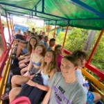 Today we went zip lining. It was an hour van ride up to the place. When we got there the people put in our helmets and harnesses. My helmet was tightened as much as it possibly could and was still a little loose. We got on a sky tram up to the first zip line. I was nervous because we were so high up. Our first zip line was just a practice and I was already peeing my pants. Then I saw the second one and it was sooo long and soooo high. I was freaking out just a little. Then I did it and it wasn’t bad at all and really fun actually. Then we did 5 more zip lines and they went good. The last one was a half mile long and had a tree tunnel. After, we drove 20 minutes for lunch and it was absolutely delicious. After eating we went souvenir shopping it was really hot and I was dying but I found some really fun stuff. I found a sloth stuffed animal which I have been looking for and it’s perfect. I love him. Then it started to pour and the thunder was really loud. It was so fun. We ran from shop to shop and got soaked. I loved it. Then we drive back to our little hotel village. I took a much needed nap and felt amazing. Then we went to dinner. After we had our weather check and I asked what color every one was feeling today. Mine was orange. Then we talked about homestays and went to bed.