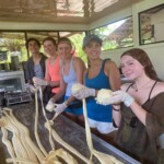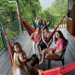 We woke up early for our bus ride to the Pacuare River. After everyone enjoyed sleeping on the bus, we ate breakfast at the rafting HQ. From there we rode in a trailer pulled by a tractor driving along a very bumpy mountain road. On our way to the river we passed a small village where many of our rafting guides live. When we arrived at the river, we loaded up into our rafts, and set off on our crazy rafting journey. Our guides barked commands at us, “forward,” or “right forward, left back,” or “rock, everyone to the right!” It was a ton of fun. Those in the front got splashed the most, but the water was so warm. It felt great. We took breaks midway; we jumped into the water during calm regions, and hiked up to spring water ponds to swim in the jungle. Despite the rocks, the foaming rapids, and the aggressive splashing from enemy rafts, the whole trip was really relaxing. The jungle surrounded us on all sides, we passed through luscious green canyons, and saw amazing birds pointed out to us by the guides. After a few hours rafting, though it felt like just a few minutes, we arrived at a beautiful green cliff face with our campsite built into its slope. The guides cooked us lunch and dinner in a beautiful outdoor dining room, where we had fun playing games, like Uno and mafia on an awesome balcony with a ton of hammocks. After delicious food, including yummy plantains, we went to sleep in our cliffside cabins. Kids will return home with fun stories of bugs in the bathrooms and spiders the size of a large fist. In the morning we prepared for a return journey down the river, and ate another great breakfast, prepared by our guides. We kicked off from shore, and traveled in our rafts, only this time, everything was bigger. The rapids, the rocks, the jungle, hiking, and even the splash fights between rafts were all larger than before, which made the whole trip much more fun. As a snack, the guides cut pineapples on the rafts. In all, we spent about four hours in the rafts today, and every moment was awesome. One group even saw some sloths. On the bus ride back, we played a fun word game called contact. Satisfied by our adventure, we arrived back at our hotel to rest for the next day. We had fun playing basketball, painting nails, and talking as a group.