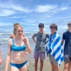 Today was a long, long time on the bus to Uvita. After saying good byes and tears from host families, everyone hopped on the bus. Many bathroom stops later we arrived to a buffet style restaurant called El Jardin. The food was great! After lunch we got on the bus to finish the long drive. We arrived to the hotel and put our bags in our rooms and then left to go to the beach almost immediately. We spent the rest of daylight playing in the waves, and saw an awesome sunset. We were having a great time trying to catch waves. We went back to the hotel to eat dinner afterwards. It was a long day but the beach made it worth it!