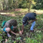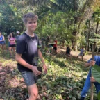After our relatively late evening activities, we woke up at around 6:30 for breakfast at 7. We got ready for the day enjoying a nice view of the foggy mountains. We had a nice hearty breakfast of beans and rice… again! Then we all went out onto the porch and split into three groups. For the next 4 hours we did service work around the lodge. One group went around cleaning the trails, digging trenches and throwing logs off the trail. The other one worked on a 6ft compost hole. And the third and final group scraped rust off rusty beams and painted a bridge. After that we had lunch which consisted of rice, chicken, avocado, and tortilla chips. Then we had around two hours of downtime which we used to talk, play games and listen to music on the hammocks. Our group leaders Clea and Liam lead a game of murder detective then volleyball in the mud. We got called in to dinner which surprise, surprise… was beans,rice, and chicken! We had an hour to shower off all the mud from volleyball before playing charades. “What a wonderful day”
