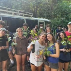 Our morning began bright and early with a wake up call at 5am. We traveled to the Limon region and had breakfast at the rafting company lodge. For the last part of the journey to the river we traveled in a tractor until we reached the rafts. We started our rafting adventure down the river, traversing class one and two level rapids. By the time we reached our first stopping point at a scenic waterfall, most of us managed to survive without falling off the raft! We ate a snack of freshly chopped pineapple and swam in natural pools created by the waterfall. Eventually, we made it to the place we would spend the night, we had a lovely lunch and dinner at the lodge and fell asleep under the stars. The next day we returned to the river for 27 km of level three and four rapids. We once again stopped at waterfalls to eat snacks and swim. After exiting the water, we started our journey to our new hotel Rosa de America. We swam in the pool, played card games and football under the sun, and chanted “PURA VIDA” at every passing moment. It was a great day, and we can’t wait to experience the next part of our great adventure.