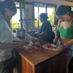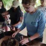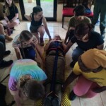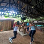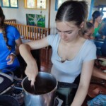This morning we all got to sleep in a bit later, enjoying some authentic Costa Rican dishes, such as gallo pinto and fresh mango/pineapple juices for breakfast. Then we drove through the mountains to an authentic coffee farm where we walked around learning about and enjoying some native plants. Then we made our way to the trapiche to learn about the processing of sugar cane. We also tested different fruit and citrus combinations. After having a delicious lunch and saying hi to all the cute dogs, we roasted coffee beans and we hand ground some for home. After a steep hill walk to the bus we returned back to BrillaSol for a heartpumping dance session. With the big appetites we worked up, we sat together to enjoy a meal as well as tres leches for dessert. To end the day we played some logic games and talked about the fun days ahead!