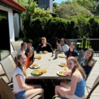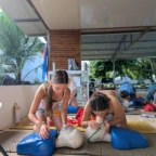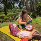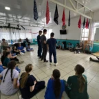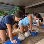 After lunch we started our wilderness first aid and CPR training. Today was the first day of 3 days. We learned different ways to carry a patient, and how to treat someone in the wilderness. We also learned the Heimlich maneuver, and how to use an AED. Later at dinner, Mario tried a spicy chilly pepper (ouch), but yay for trying new things! Then we prepared a welcome dance for our new friend Nola! That’s all for today. Love you guys. Bye!