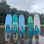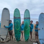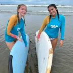 Good morning! We awoke from our slumbers and took a short stroll to breakfast. We munched and crunched on breaky then pransed on over to the beach. Once we were at the beach we put our towels down and picked our boards up to ride some sick waves ! 🌊 after surfing we all looked up and saw six monkeys swinging above the trees. We galloped to lunch and it was nacho cheese! Half of us stayed at the the hotel to lounge in the pool and the other went back to the beach for more sun and sand. Then we all dolled up for din-din. Afterwards we played games, had chats and wrote letters to our future selves. Goodnight!