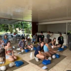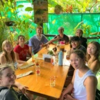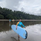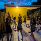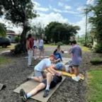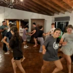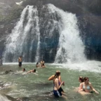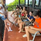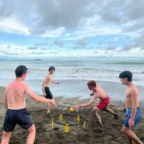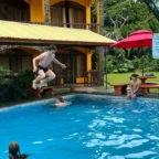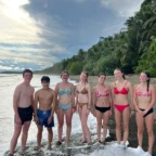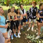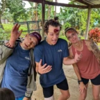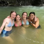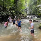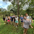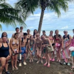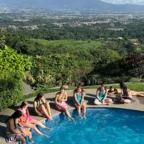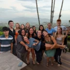 We woke up with big smiles on our faces after finally being able to see the sun! After a quick breakfast, we piled onto the bus and hauled over to a local farm. After a treacherous and muddy hike, we channeled our inner Lorax and planted some new endangered trees. Then we ventured farther into the jungle until we came upon a magnificent waterfall in which we all delved deep into. Swimming at the waterfall left us wanting more so when we returned to the hotel, we spent a few more hours by/in the pool. Eventually tired from synchronized swimming performances and games of monkey in the middle, we showered and changed into our yoga pants (guys included). There’s nothing better than winding down after a tiring but exciting day by doing yoga on a rooftop patio with the sounds of nature all around us. We wrapped our day with a hearty dinner, puppy and kitten cuddles and a fun group game. Goodnight!