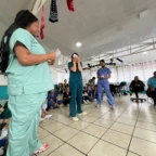 Hi everyone! Today we woke up at the crack of dawn and had a splendid breakfast. Following breakfast, we eagerly boarded our mode transportation (bus). Traffic was horrid but we made it to the clinic. We then split into two groups and we went to the different clinics (one was a mobile clinic and one was the main clinic). We had different jobs at the clinic including shadowing the doctor, pharmacy, the waiting room and health education. Later in the afternoon, we went to Casa Club – which was a day center for adults with mental disabilities. We performed various skits about health topics like road safety, brushing teeth, showering, kindness, exercise, and nutrition. We also played games, like red light, green light. When we got back to the hotel, we had free time for a bit then had a dance lesson. We learned salsa, bachata, and merengue. Then we had dinner and went to bed. We are excited about another clinic day tomorrow, see you in a week!