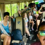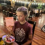 Going to the Beach: Today, we got to sleep in a bit. We then ate a breakfast of eggs, bacon, and toast before our long ride. We got in the bus and started our trip. Randall put on the playlist we had prepared throughout the trip. There was music we all liked, so it was a good time. All of us took in the green mountain views as we rode through the countryside. We ate lunch at a place called El Jardin. It was a buffet style place, with ice cream, smoothies, souvenirs, and more. We had a tasty lunch, then got some “chunches” at the souvenir shop. We got back in the bus for the second leg of the trip. There were awesome views of the sunset over the ocean. We finally got to the hotel and settled in. We had a bit of free time and then ate dinner. After dinner, we played a fun game with maps of Costa Rica. We had a bit more free time, then went to bed to prepare for our big day tomorrow.