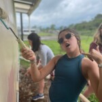 We started the day off with delicious pancakes. We took a quick drive to La Lucha, that’s the school that we are volunteering at, they gave us a warm welcome with cute gifts. We then split up into groups, one of which painted the new bathrooms and the other cleaned vines off the fence . After saying goodbye to our new friends we made our way to a delicious meal where we enjoyed tacos, chicken nuggets, and burgers. We then made our way to the animal sanctuary. After a little background on the animals, we chopped fresh fruits and vegetables to feed the adorable monkeys. The sanctuary was so dope we couldn’t stop talking about it. After arriving back home to our tropical paradise we ventured off into our ideal evening activities. For example some of us went on a pleasant evening stroll through a hiking trail, while others took a nap. We had some fun playing relay races before heading up to dinner. We ate some immaculate fried rice. After our bellies were stuffed with goodness we trotted down the steep hill, slithered into our sheets, snuggled up tight, and fell right asleep.