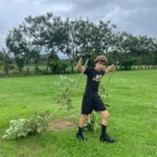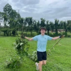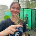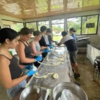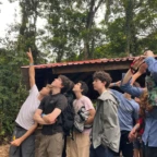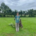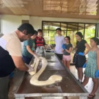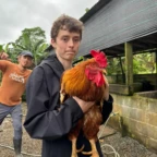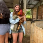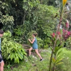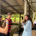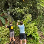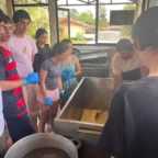 We woke up and ate breakfast at our host family’s home. Then we split into two groups at the saló comunal in town. Group 1 cleaned the streets and picked up trash. The other group cleaned ditches next to the main road which are responsible for taking rain water to the nearby river. It was very difficult and dirty work. As we worked, passing cars honked in appreciation of our works. One man even stopped to give us pineapple and another gave us coconuts to drink out of. Then we returned to our homestay for lunch. After lunch we went out at 1 pm to go to a butterfly garden, we went on a walk around the farm and learned about the different butterflies. It was down pouring so we didn’t go on a hike afterwords. We went back to the homestay and enjoyed dinner with our families and relaxed for the rest of the night.