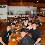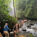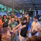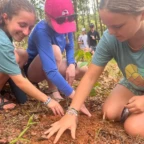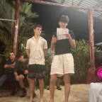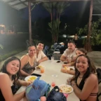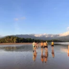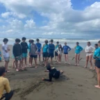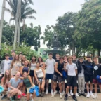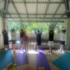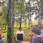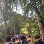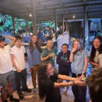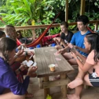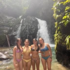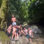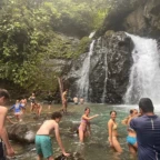 We woke up today for our last full day at the beach. After eating a filling breakfast, we got on the bus to go to a local waterfall. On the way to the waterfall, our guides led us in planting some very cute baby trees. We got to the waterfall shortly after, and the trees and river were beautiful. The river water was much colder than the ocean but it felt very refreshing and standing under the spray was super cool. We then went back to the hotel for some lunch and to get ready for yoga. We took the bus to a private studio, where we met our yoga instructor. She led us in breathing exercises and yoga poses that included the warrior sequence. We wrapped up with Savasana (corpse pose) and headed back to the hotel. After a short break it was time for beach day 2. At the beach we saw many sting rays in the shallows and fortunately no one got stung. Back at the hotel we had our final meal at the beach before heading to bed early for a big day tomorrow.