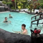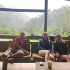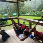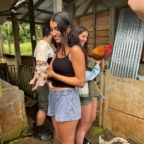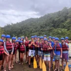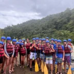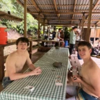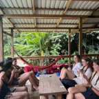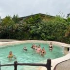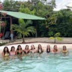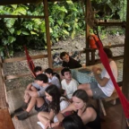 We started the day with a 5:30 wakeup into a 3 hour bus ride to the white water rafting experience. We ate breakfast, which was rice and beans with eggs and some tropical fruit, and got on a bumpy tractor ride for a short trip to the river. We were split into groups and were each given a guide. We rafted down class 2-3 rapids for 1.5 hours. We were given delicious pineapple as a snack while we swam in a waterfall for a short break. We then made our way to lunch. The rapids were very exhilarating! That night we slept in a beautiful campsite and hung out in the hammocks. The next day we had a later wakeup at about 8 A.M, ate pancakes and then made our way to the second river. The second river had even more powerful rapids, (up to class 4), and it required a lot of balance and core strength to stay in the raft. But we did it! Finally we took a bus ride to the resort where we played in the pools and hot springs and then made our way to dinner.
