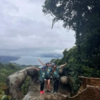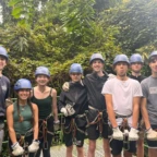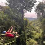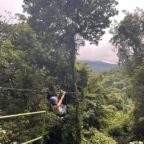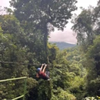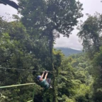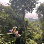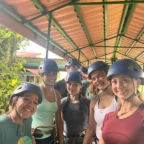 Today we had an early morning wake up to get prepared for ziplining. Our bus was coming to pick us up at 7:40 so everyone had to be ready by then. Once we got to the ziplining place we got harnessed in and took a gondola to the top. There were a total of 7 ziplines and the fastest one went 70 kph. Many of us were scared of heights-including us so the first zipline was very nerve wracking. Overall everyone had a ton of fun and we all were very pleased with the length and speed of the ziplines. After zip lining we went into town to get lunch and do souvenir shopping. The sun finally came out today which was a great surprise! Later today were going back to homestays to play card games like Tonto and Guerra. And then have dinner with the family.