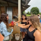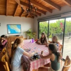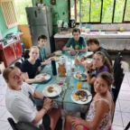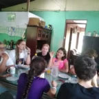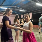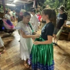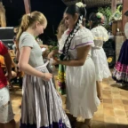After waking up at our hotel, we packed our bags and ate a fulfilling breakfast. We were then driven to the community to meet our host families and met the director of the development association. We greeted and took photos with people from our host families. They then took us to their homes. We spent the remainder of the day getting to know our families by playing games, eating food, and learning about each other. They were very welcoming and gracious with our Spanish skills. Settling into our new home, we washed some clothes and the gave them our gifts. In the evening, after spending lots of time together, we traveled to one of the host families homes for dinner. We learned how to make traditional tortillas, and we also ate plantains, yuca, and chicharones. The gathering was full of music and dancing. We even got to watch a traditional dance performed by girls and boys in the community. Today was a great introduction to the people we will be learning from and spending time with over the next week. ~