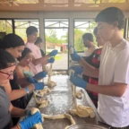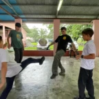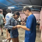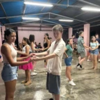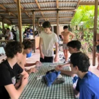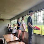 This morning we all woke up in the separate homes of our host families, after a fun filled night of fiesta. We started the day off early eating different breakfasts prepared for us by our host families. We were then driven to the village’s school in which we participated in various facets of volunteer work. For example organizing the supply shed, obliterating termite infested desks and tables, and painting to make a more comfortable space for this community. After lunch we continued to form bonds with our host families. At 6pm we conveyed at the school once again for a dance class from the locals. Although we were tired we couldn’t wait to dance.