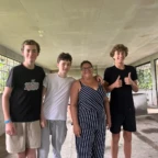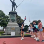 We did ice breakers in the morning to help learn everyone’s names. After that we set intentions for the trip and group norms. Then we went into the town of Alajuela and ate lunch at a traditional tortilla place. We got really good juice there, guava, blackberry, pineapple, papaya! Then we split into 5 groups for a scavenger hunt. We had to ask locals the name of churches, statues, and other landmarks in Spanish. We were also tasked with going to a bakery and supermarket and purchasing items. People were listening to music and dancing in one of the parks we went to. In the town, we saw lots of parrots, and even more pigeons. After the scavenger hunt we went back to our hotel and relaxed for a few hours. Our hotel is on top of a hill, so we get a great veiw of the city and the forest. During our free time, we played in the pool and colored outside. There were lots of super loud bugs flying around! We then ate dinner before having some cake and ice cream for desert.