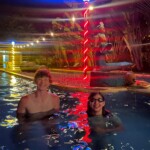 After settling into our home, we broke off to explore the various amenities including a pool with LED lights, hot springs, and a fountain. Dinner was at the festive restaurant bungalow, and as we conclude the day we are currently enjoying the pool surrounded by fairly lights. Xoxo