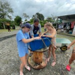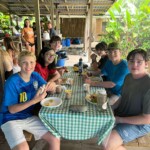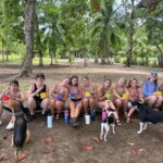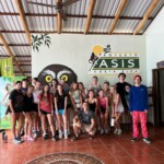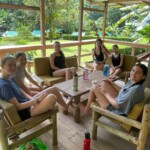 Today started off bright and early at 5am. We quickly packed our bags and hopped onto a 3 hour bus ride to Province of Limón where we met our rafting guide, Roy. We had a delicious breakfast at the rafting place and then got onto another bus to then get on a wagon which brought us down to the white waters. Yes, very remote! We got all of our gear on and then prepared to take on the water. Although a lot of us were new to rafting and were very nervous, we ended up having an amazing time. After about an hour of fighting through the rapids, we stopped at a beautiful waterfall to relax for a bit before we continued rafting. In one of the rapids we were rafting as normal and then a fish flew into my raft! And actually hit and made everyone scream, in the end one of the people on my team decided to actually GRAB IT IN THEIR HANDS. In the end we let it out to continue our journey. We rafted some more and then finally arrived at our destination for the day, Base Exploradores. We are staying right in the middle of the jungle which is super cool. We had a nice lunch prepared by Roy and the rafting team and then had some time to relax in our tents. Although the day started out sunny it was raining so much during the afternoon, we had planned to take a hike to a waterfall but instead we all hung out and bonded with our peers by playing some fun games and got to know each other a little better. So, although the rain started as something that we dreaded, it ended up giving us better experiences. The rest of the day was filled with these type of experiences, talks, and games between each other. We ended the night with dinner where we celebrated Naomi’s birthday with a delicious meal and a cake. Everyone is now going to relax and prepare for more rafting tomorrow!