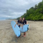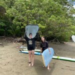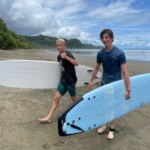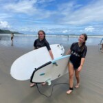 Today we woke up to an amazing pancake breakfast with very much needed coffee. After breakfast we walked through the town and grassed to the beach to go surfing. We were all nervous but also super excited to get out there. Our instructors were super energetic and experienced. We caught some gnarly waves .