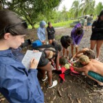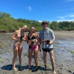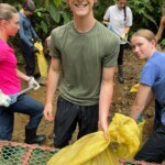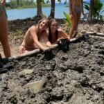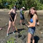 When we arrived to the mangrove worksite we were split into groups to do various tasks. One group worked on collecting data and seeds for the mangroves while another group worked on shoveling mud and hauling it up to the worksite. After working all morning, we had a nice lunch by the beach and then had time to swim after. We continued to work on building a shelter for the mangroves and even though it was raining everyone was super productive.