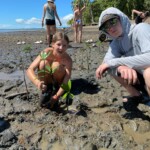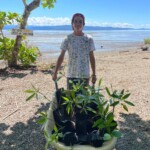 We then took shovels and filled wheelbarrows with plants in order to venture onto the muddy beach and plant the 6 month old mangrove saplings. Once we planted the little trees, we had a quick water and sunscreen break and headed into the mangrove forest to search for more red and tea mangrove seeds. Afterwards, we watered the younger mangrove saplings, and packed up to go back to our hotel for lunch.