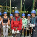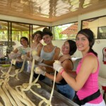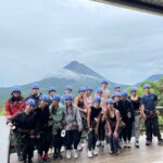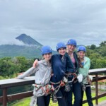 Utilizing the energy gained from our exquisite breakfast, we boarded two vans and headed to the zip lines. On the way, out window, we had a stunning view of the Arenal volcano, a rare occurrence as the view is usually obstructed by clouds. After a short ride filled with laughter and games, bonding with our fellow peers, we arrived at the zip lines and got fitted for our harnesses and helmets. While waiting in line for the gondola to carry us up the mountains, we sampled a variety of spicy hot sauces, one which many bought as souvenirs. Then, after a short safety lesson, we rode the gondola up the densely forested mountains. As we ascended, we observed the flora and fauna of Costa Rica, including an approximately seven-foot poisonous snake from a safe distance.