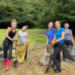 After lunch we hiked back down to shovel for 2 more hours but we kinda stopped halfway through and stacked rocks. Ayla spotted some rocks and Sam placed them on top of each other. We made the highest one because we are the goats. We took a photo of all of us after 5 hours of shoveling sand into bags.