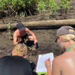 We woke up this morning sweating and were pleased to realize the sun was out and shining after two days of rainy weather. After a nice eggy breakfast, we suited up to spend the day out in the mangrove nursery. Once we arrived, we learned about mangroves and their importance from the LAST (Latin American Sea Turtles) research assistants. We learned that mangroves are the first barrier for water related natural disasters as well absorbing at least twice as much carbon as rainforests.