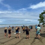It was an early start to the day with a 6 o’clock wakeup to get ready for the second day of our sea turtle project. The beaches were cloudy and the water stormy and a slight drizzle fell on us as we slept on the beach for the first part of the day. We all gathered up our stuff and went under a tree to seek shelter from the light rain. We all eat tortilla chips and muffins for a snack and played ninga to kill time. After a lazy morning we were excited to finally catch our first turtle and then the second (both hawksbills). We got to work measuring, microchipping, and weighing them. It’s so interesting learning the certain ways they need to be taken care of. The day was full of excitement with caring for the turtles but balanced with a relaxing swim in the rain. A group of us found a tree log and swam with it for the rest of the day trying not to get dragged out too far away from shore.