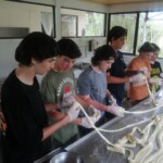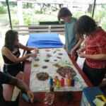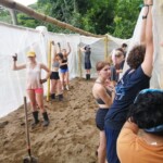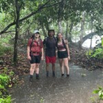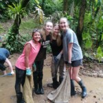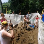 The day started with a lengthy and humid hike to the turtle sanctuary. During the hike, we found turtle tracks that lead to a nest of eggs just a few feet from the beach. Lucky, we where able to collect the eggs and hike with them back to the nursery. After completing the enclosure, we where each able to place two eggs safely into the ground. After the enclosure was finished and the eggs safe in the ground, we hopped on canoes and paddled down the river to a near by waterfall. We climbed through rocks and were eventually able to jump into the water below the waterfall. Surprisingly, the water was warm and floated down the rest of the river, back to turtles. Then, we hiked back in the rain and ate a late lunch. After some rest, we made bracelets for the conservation center to sell for more funding. We ate dinner and once again were put to sleep by the rain.