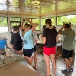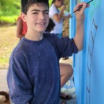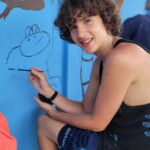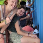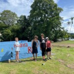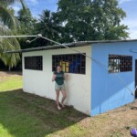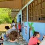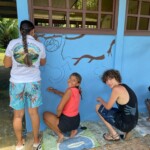 This morning our group woke up at 7:00 to then eat a yummy breakfast at 7:30. Our breakfast was eggs cooked in tomato sauce with toast and fruit. Then after breakfast we started our 20ish minute walk down the beach to where a small, one room school house is located. When we arrived, we got right to painting. Ricardo had us paint the school house, the bathroom walls, and a open aired classroom. Good thing we wore our painting clothes because we got really messy while painting. Once the paint dried, we started to add some fun details. We sketched then painted: tapirs, macaws, turtles, “Pura Vida”, monkeys, and a coati. We had a break from painting for lunch which was chicken stew, salad, rice, and mango juice. We had lunch on the beach in the shade of coconut trees.Then once lunch was finished we went right back to painting. I think i can speak for the group when I say we especially enjoyed our service work today. Then once our painting time was done, we started our walk back along the beach. Our walk was a bit of a race sgainst high tide. During one point we had to cross an area of sand that was flooded with water! During that crossing we had a few members of the group take a tumble. Thankfully no one was hurt and everyone had smiles on their faces. Once we got back to camp we had some free time to shower and/or practice for the talent show tomorrow night. During our free time you can buy virgin pina coladas, virgin mojitos, and ice cream from a little snack shop. We all love it beacuse it’s a nice refreshing cold treat. After that we came together for a dinner of squash soup, crutons, shrimp rice, and black beans. Mid way through dinner it started torentially raining, which is definitely not uncommon. After dinner, we had some time before our meeting so we got to hang out in these awesome hammocks. Then we all came together for our nightly meeting. We did our reflection, which tonight was a high and low from today. We ended our meeting with a fun and challenging hand clap game that Kat showed us. Then we ended the night with some group singing and guitar playing.