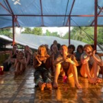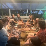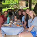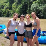 Once at the river we got helmets, life jackets, and paddles before being briefed on the rules of the raft. Then we set off with our guides on the rapids! We stopped halfway down the river at a natural pool with a waterfall we were able to slide down and swim. We finished the rapids and arrived at our beautiful campsite. From there we ate a lunch of build your own burritos. We all settled in to our tents and had some down time to bond. After that we played some group games such as name games, leadership activities, and card games. Then we had a delicious home cooked meal with chicken, rice, and veggies. We ended the day with a community circle where we shared our highs and lows.