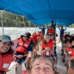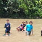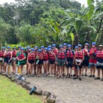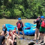 We started the day with an early wake up call. We enjoyed a home-cooked breakfast of eggs and pancakes and then set out in the river. The river was beautiful and lush green. We could see tons of waterfalls. We had a few wipeouts, ending with one lost shoe and a lot of laughs. Our raft group had four out of the six of us fall out at some point! We are had a snack of fresh pineapple on the bank of the beautiful river, and when we were done, we shed our life jackets and walked back into the camp where we had eaten yesterday. After lunch at the camp, which was chicken burritos, we loaded up on the bus for a four hour ride. About halfway through, we stopped at a Costa Rican gas station, and got some snacks that we had never seen before. Continuing on, we got to our hotel, Heliconias. We got set up in our rooms and then called our parents. We chilled in our rooms for a little bit and then went to dinner. Dinner was spaghetti with garlic bread. We can’t wait to zip line tomorrow!