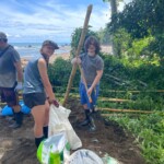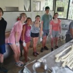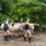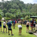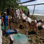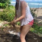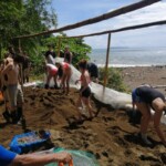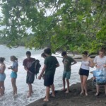 This morning the group woke up at 7:30 to eat breakfast and quickly started our 45 minute hike to the beach, where the turtle nursery is located. When we arrived we worked until 1:30, clearing out bamboo roots, filling sand bags, and putting up a tarp to protect the turtle eggs. Then we ate lunch and continued to work for an hour. Before hiking back, we jumped in Rio Claro, the river next to the nursery and the ocean. Once we got back to the hostel, where we are staying for the next 4 days, we showered and rested before our Spanish lesson with our leaders James and Nohelia. Soon after, we had dinner and an evening meeting to wrap up the day!