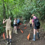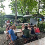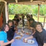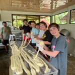Today we woke up at 8:00 and got ready in our service clothes for an 8:30 breakfast. For breakfast we had eggs, fruit, and jam toast with juice. Then we were off for our 20 minute hike through the cloud rainforest to our conservation location. Unfortunately we had a smaller work group today due to some people feeling under the weather, but those who participated in service work had a great time! We did the same type of work as yesterday, shoveling sediment to restore pathways to help rangers and biologists access the rainforest. While working the rangers pointed out puma paw prints near our work site! We just had a half day so we were done by lunch. We headed back up and had a meal of pasta salad, a rice dish, chips, and pico del gallo. After lunch we had a presenter come speak to us about the organization and what they do at the station. She talked about how the Children’s Eternal Rainforest was started and learned about the wildlife they preserve. After we did and activity where we drew and labeled mammals, reptiles, birds and plants around the area, lots of which we have seen around the property, to teach kids in near by school. We then had a group meeting before dinner. For dinner we had beef quesadillas, french fries and salad. We had a popcorn desert and had some downtime to play games. Before bed we had one last meeting where we played a game and talked about our highs and lows of the day and made our plan for tomorrow. We are excited for another day tomorrow!