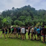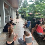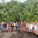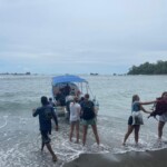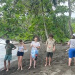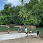 Today the group woke up at around 7 and ate breakfast at the hotel. We ate waffles, eggs, beans and rice, juice and fruit. We then quickly grabbed our clean laundry. Then we got on the bus for 2 hours, taking us to our boat trip. We toured the river on the boat and learned about the wildlife and mangroves. The river spit us out on the ocean were we traveled another 30 minutes to the Life for Life sanctuary on the Oso Peninsula. After unloading the boat we took a 15 minute barefoot walk to where we are staying. Right after a lunch of fried rice, salad, fried cheese sticks and freshly cracked coconut water we got settled and took our 45 minute hike to see where we are working for the next few days. On our hike we saw a family of white faced monkeys, a tapir, and a coati. When we reached the turtle sanctuary we learned about the background of the program and the importance of this work. We got to swim in the saltwater river and spend time on the beach before heading back for dinner. We had fried fish, vegetables, fried plantain, zucchini soup, and a passion fruit dessert. After dinner we had a group meeting in hammock area where we played a game and talked about our service day tomorrow. We are all exited about our new hostel and ready to fall asleep to the sound of waves.