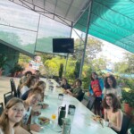 Today we left Heliconias Hotel, and started our journey to the turtle sanctuary. We had a delicious breakfast of pancakes! Next we started our 5 hour bus excursion. We stopped at a souvenir shop and had lunch as well as shopping time. We all boarded the bus again and finished our excursion full from lunch wish some fun new souvenirs. We arrived at our nice hotel in the rain, and started packing for our next adventure with the sea turtles. We had a scrumptious meal with burgers, quesadillas, nachos, and many more delicious entrees. We then gathered around and finished off the night with information about our turtle adventure and a big game of mafia. It was one of the many fun but long bus days! We’re excited for another adventure tomorrow!