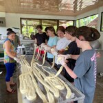 Today was our first full day at Poco Sol, San Carlos. We spent both the morning and the afternoon doing community service work in multiple groups. In the morning, one group grabbed shovels and hiked around the forest, clearing water gutters on the trail so the water would flow into the lake. We learned the lake water is used for hydropower to power electricity for Costa Rica, making it so that nearly the whole country is powered by green energy. The second group headed to a stream to gather materials and repair the road. They gathered sediment by shoveling it into recycled canvas bags. Then it was taken up the hill, dumped on the road, and leveled out. During the afternoon, both groups continued gathering sediment and covering the road.