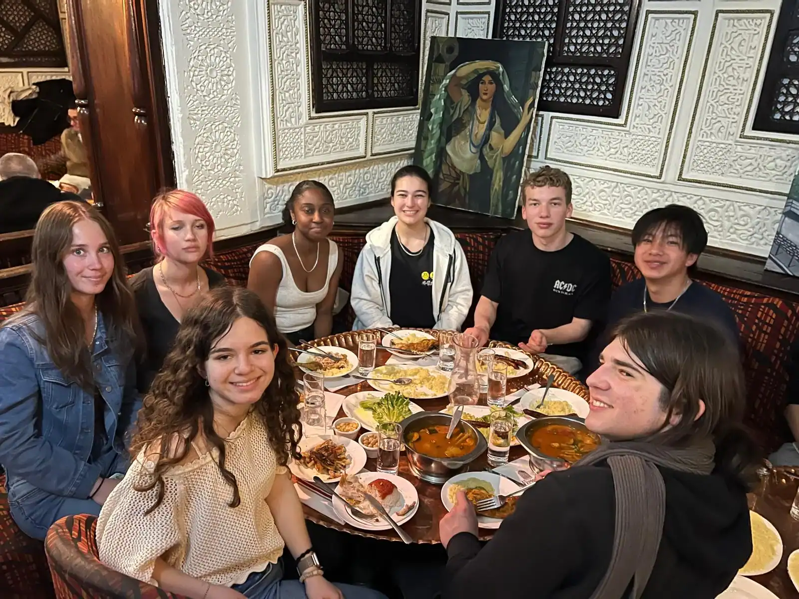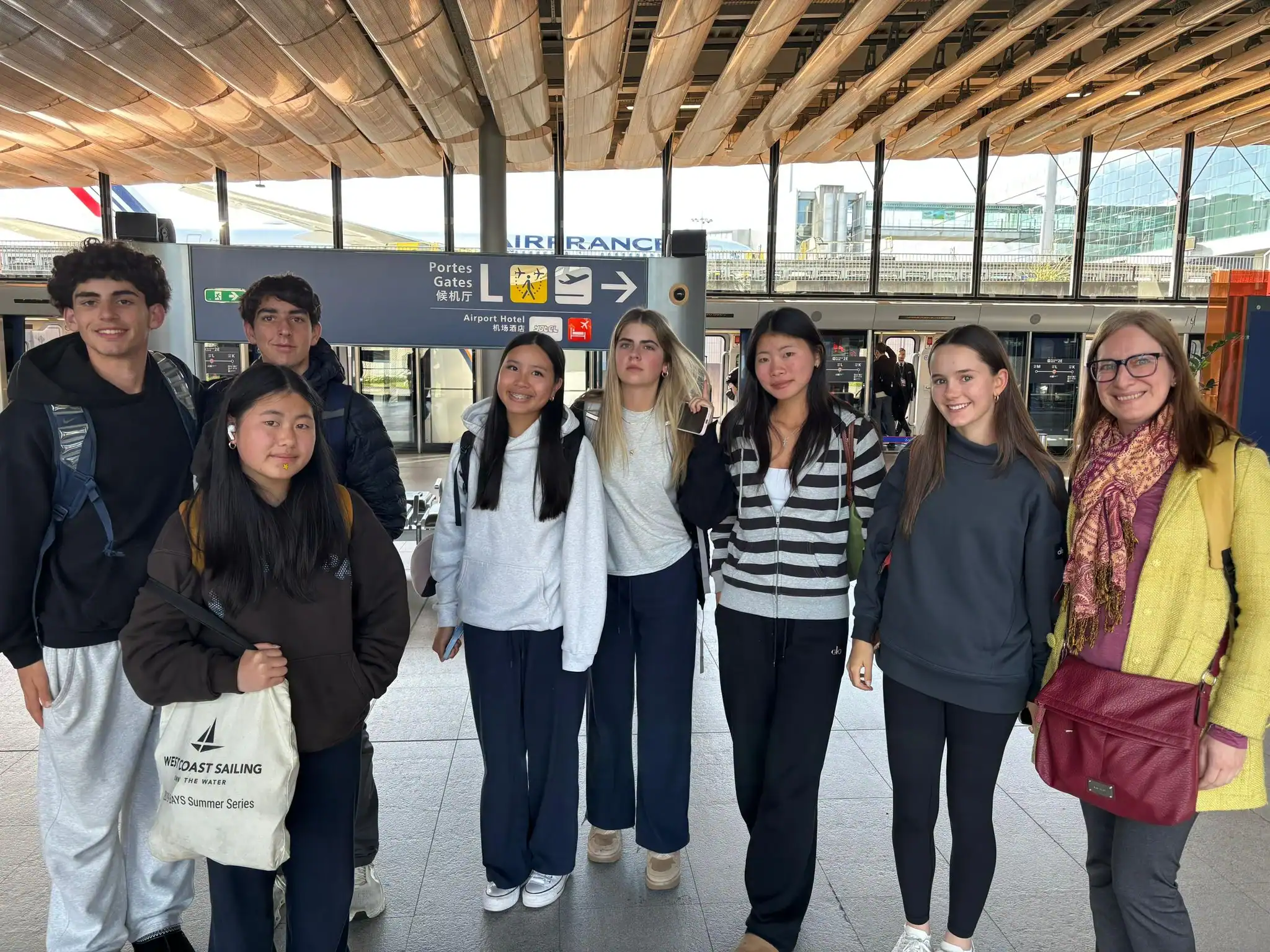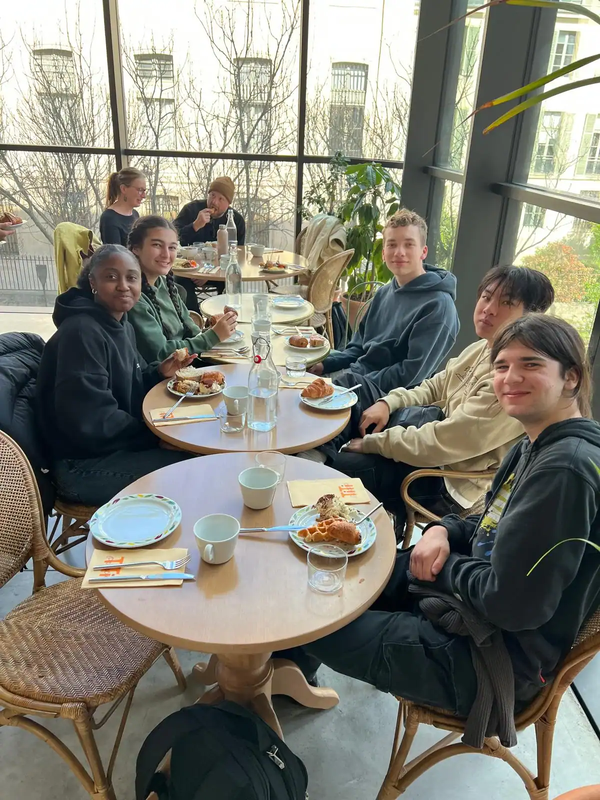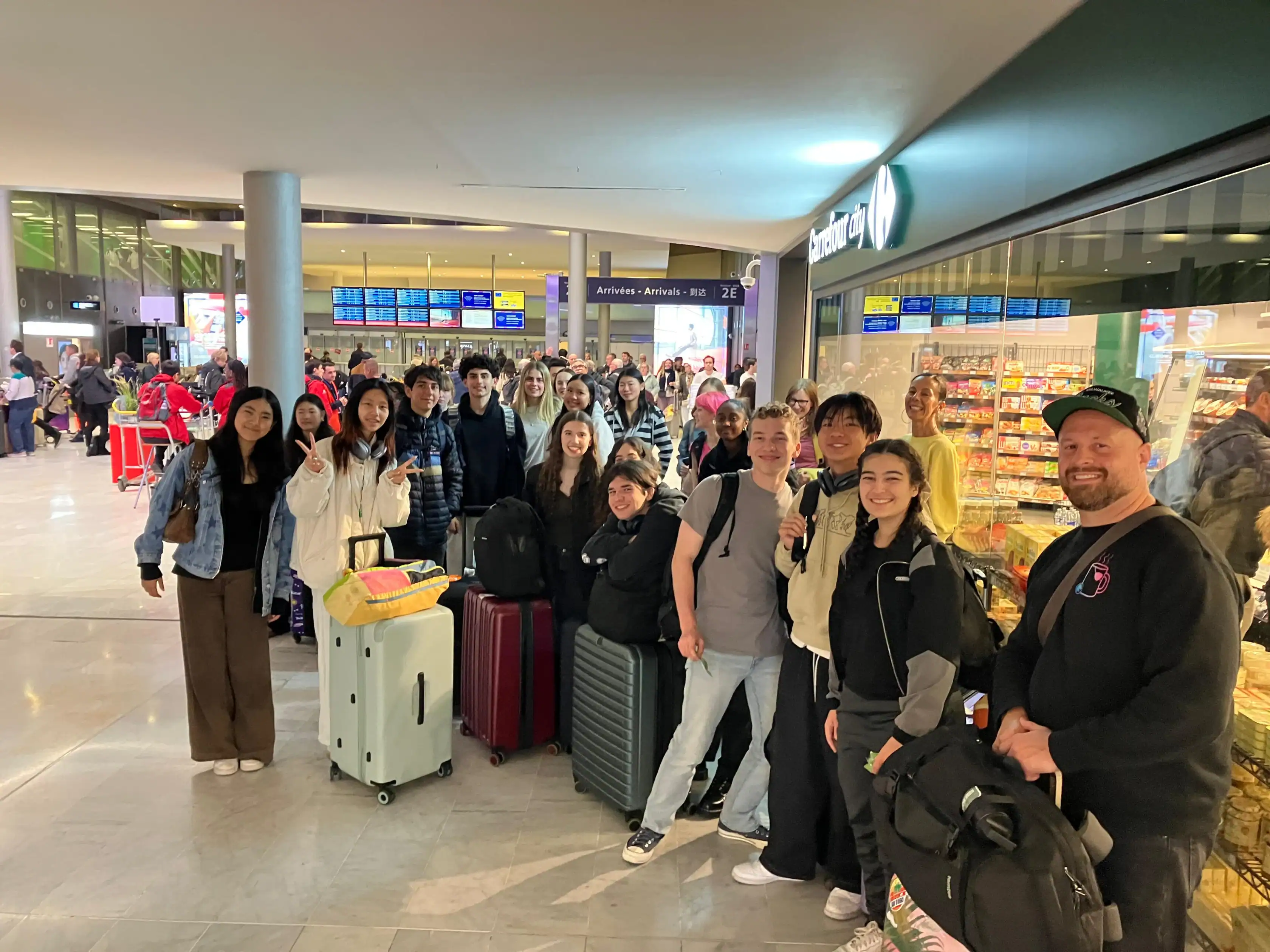 On Friday afternoon, we boarded our AirFrance flight to Paris. For dinner, they served chicken, rice, bread, and chocolate cake. Très délicieux! When we arrived in Paris, we took the bus to our hotel and ate a delicious lunch buffet. We enjoyed some bread, pain au chocolat, and of course, croissants. After lunch, we took the bus to the Musée d’Orsay, where we looked at everything from sculptures to impressionist paintings—including paintings by Monet and Van Gogh. Then, we went back to the hotel and had some free time, during which some of us went shopping and some others played games. To end the night, we went to a delicious crêpe restaurant where we ate savory and sweet crêpes. À demain!