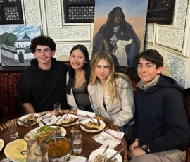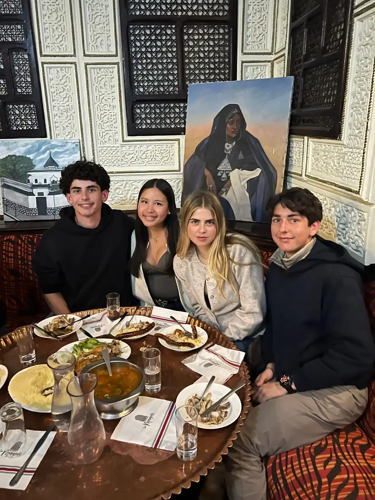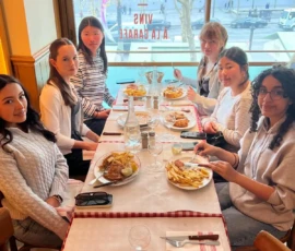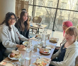Once we finished our initial tour of that section of the city, we had free time where we broke off into small groups and walked around the city. Our mini group decided to visit Zara, a clothing store. Once free time was over, we went to Notre Dame as a group, where people were celebrating the mass of Palm Sunday. The church was huge and filled with lots of glass artwork. When we finished looking at the church and observing the art, we walked back to the hostel to rest up before dinner. Once we were ready to go, we walked over to a Moroccan restaurant for dinner. The food was delicious! Finally, we headed back home from the night. By the end of the day, we were happy yet tired because we had walked about 25,000 steps (12 miles) that day. Overall, it was a great day and we’re looking forward to tomorrow.