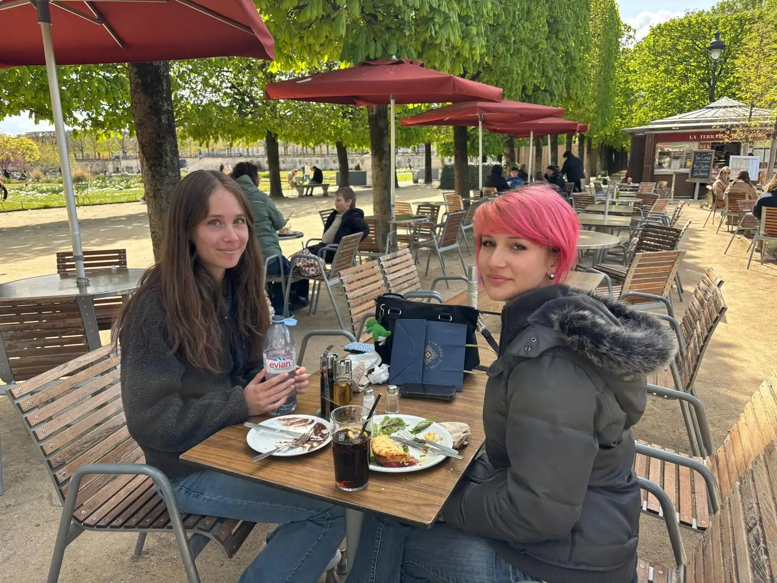 Today was an exciting day. We started by eating breakfast at the hostel where they had an assortment of french foods like baguettes, croissants, and cheese. We then walked over to the metro to visit the Eiffel Tower. When we arrived, we went up lots of stairs (330) to reach the first level where we walked around the tower for about an hour. The view of the Paris skyline was awesome and we took lots of photos. Next, we took the metro again to reach the Jardin de Tuileries where we had lunch outside in a nice park. After lunch, we spent some time walking around the garden and admiring the outside of the Louvre. After that, we walked across the île de la cité and learned some interesting facts about Paris. For example, there was a bridge where people would put love locks and it was a popular activity for tourists. However as more and more people added locks, there became too many for the weight capacity of the bridge (almost a million locks), in which case they had to be cut off and changed to prevent locks from being placed. Now that bridge has no more locks.
